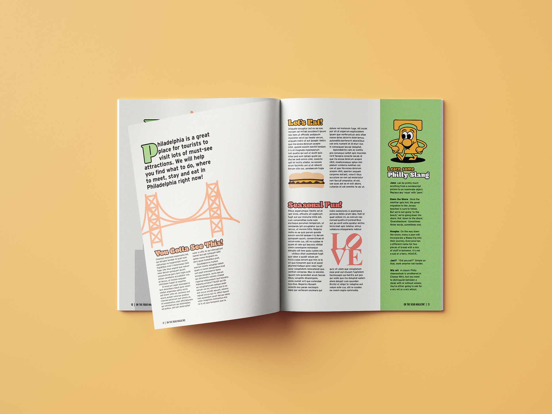 I designed a 24-page magazine that included a Table of Contents, Credits, a Letter from the Editor, and two feature stories. The first feature story was a two-spread midterm project submitted to the Society of Publication Designers (SPD) student competition. Advertisements featured in the magazine were sourced from Ads of the World (adsoftheworld.com).